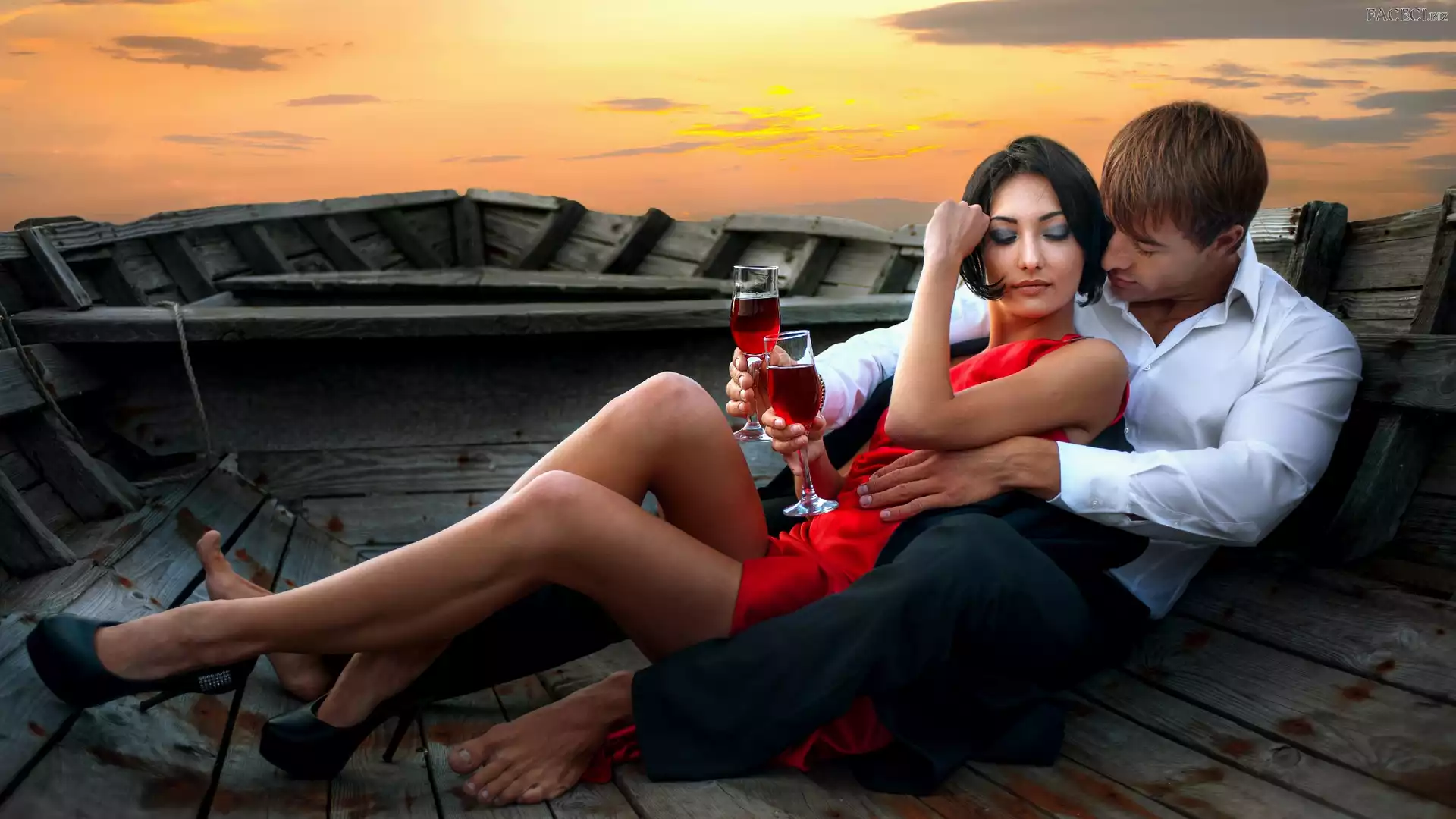 Łódka, Kobieta, Miłość, Wino, Mężczyzna, Czerwone - faceci.biz